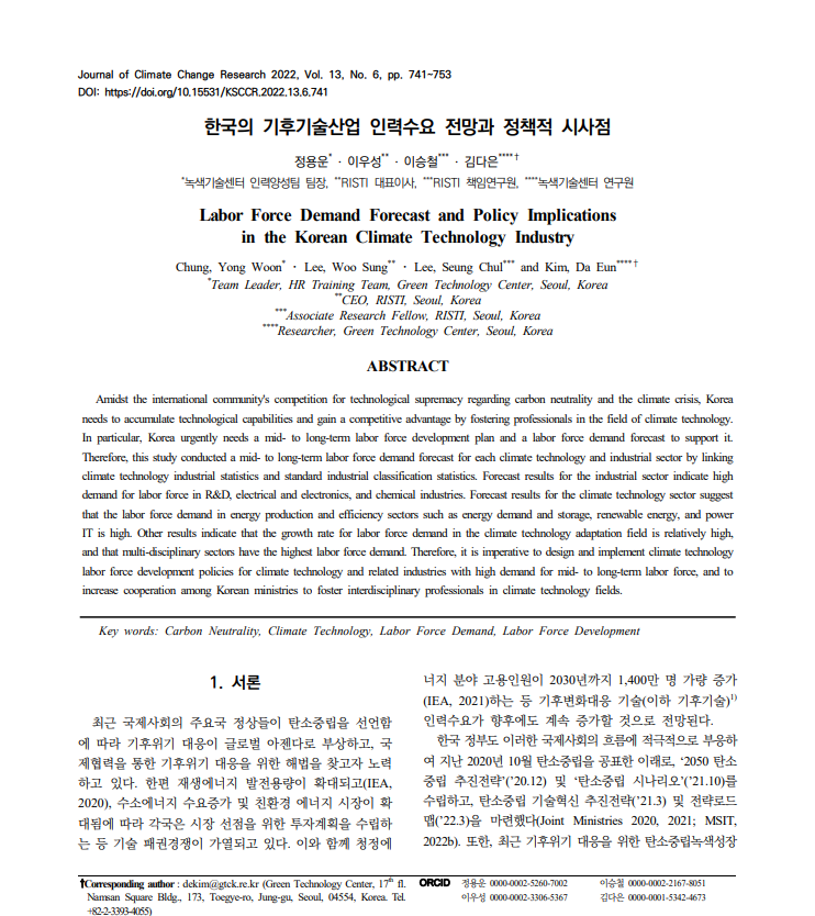 ["한국의 기후기술산업 인력수요 전망과 정책적 시사점" 논문]