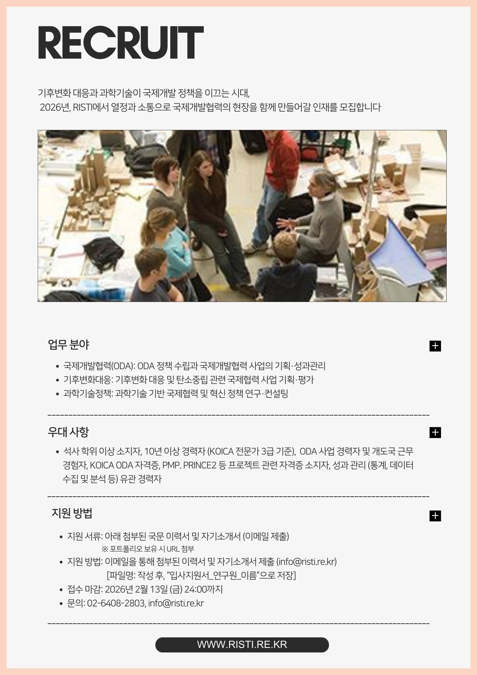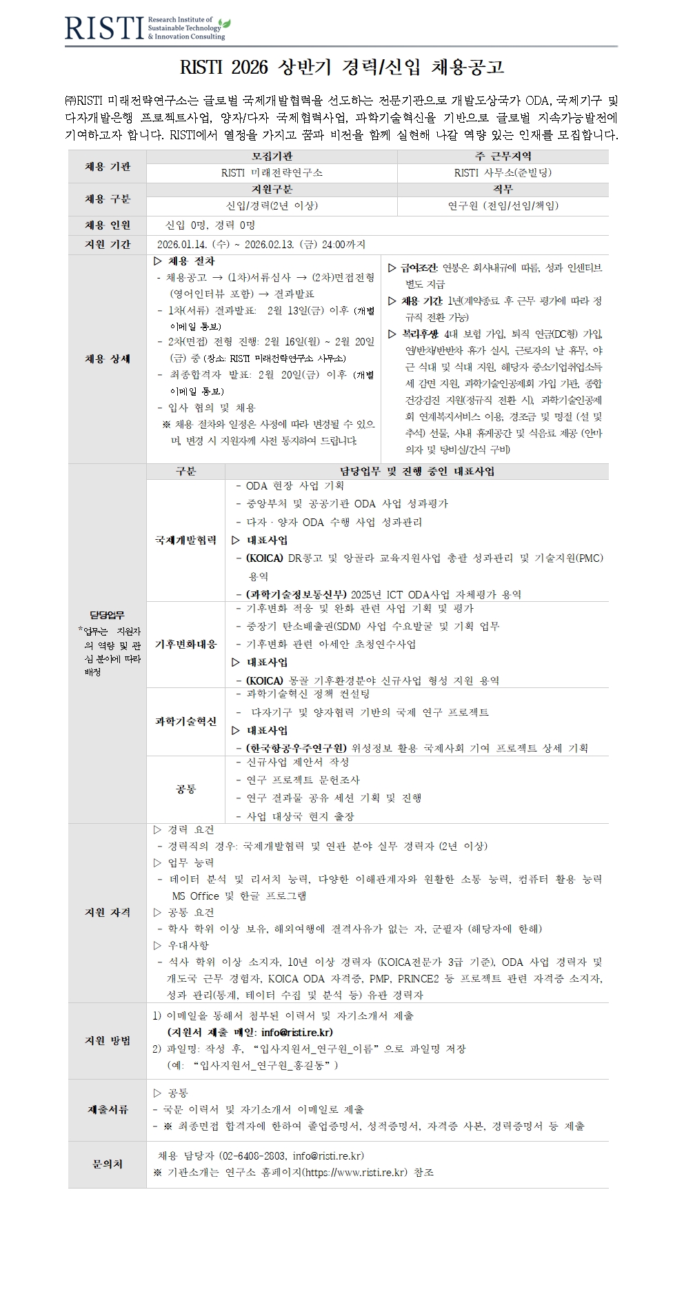 RISTI 2026 | 국제개발협력·기후·기술 정책을 함께 설계할 인재(경력/신입) 모집(~2/13)